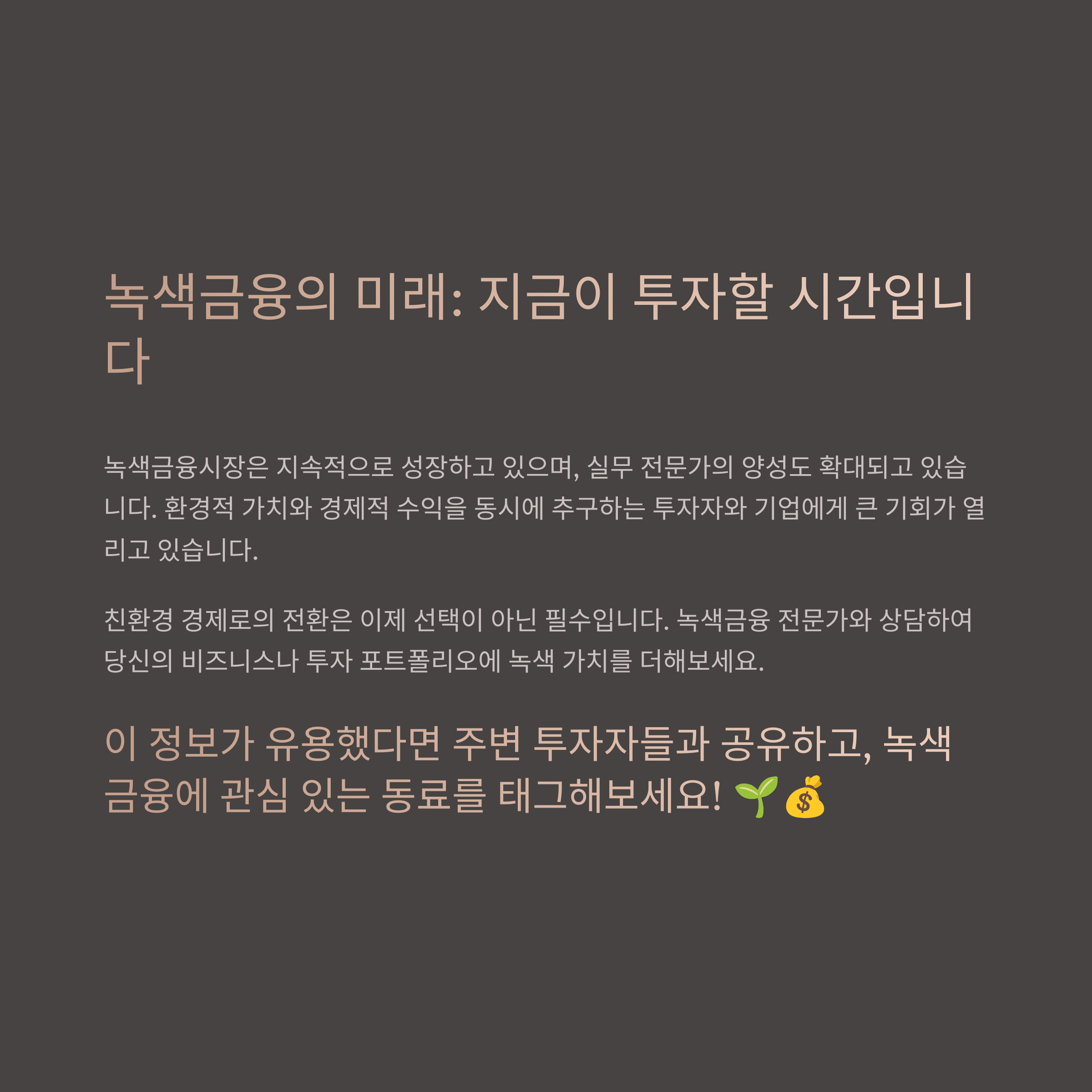 안녕하세요, 언제나네입니다! 오늘은 녹색채권을 통해 지속 가능한 투자를 실현하는 녹색금융에 대해 이야기해보려고 합니다. 환경 문제의 심각성이 대두되면서 금융 시장 내에서도 큰 변화가 일어나고 있는데요, 이러한 변화 속에서 우리는 어떤 기회를 잡을 수 있을지 함께 생각해보는 시간 되었으면 좋겠습니다.