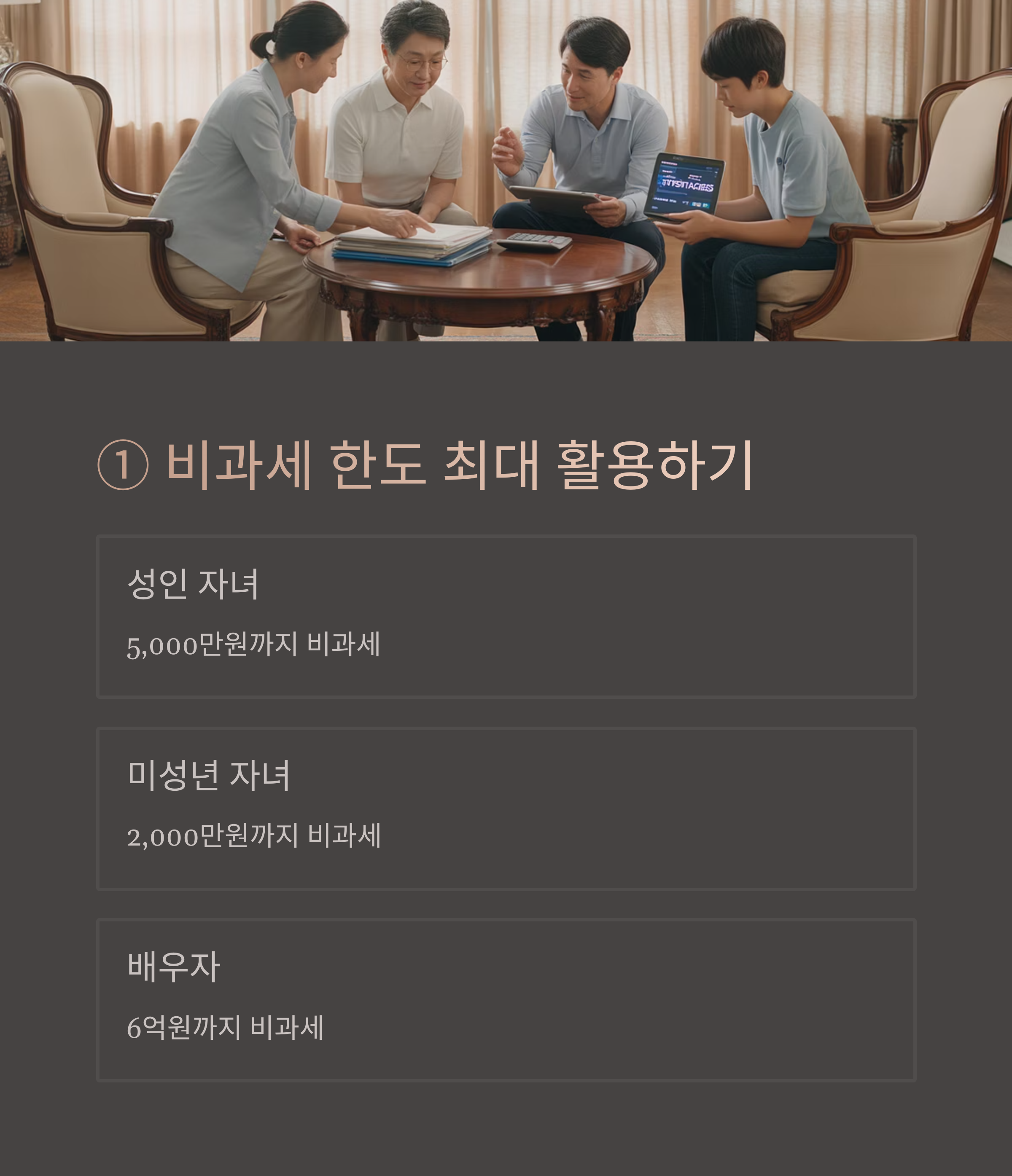| 미성년 자녀 증여 | 2,000만원 한도 적용 | 자산 관리 주의 |