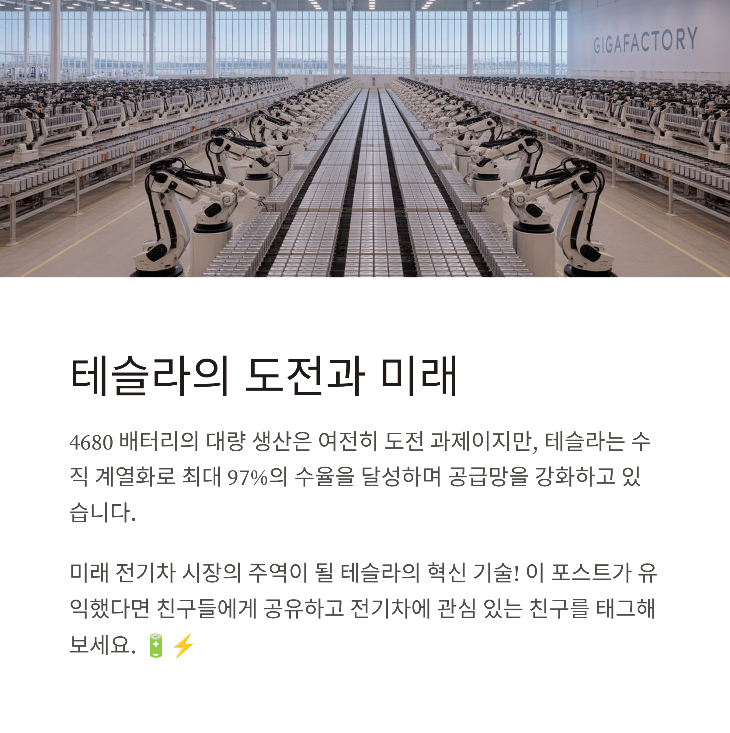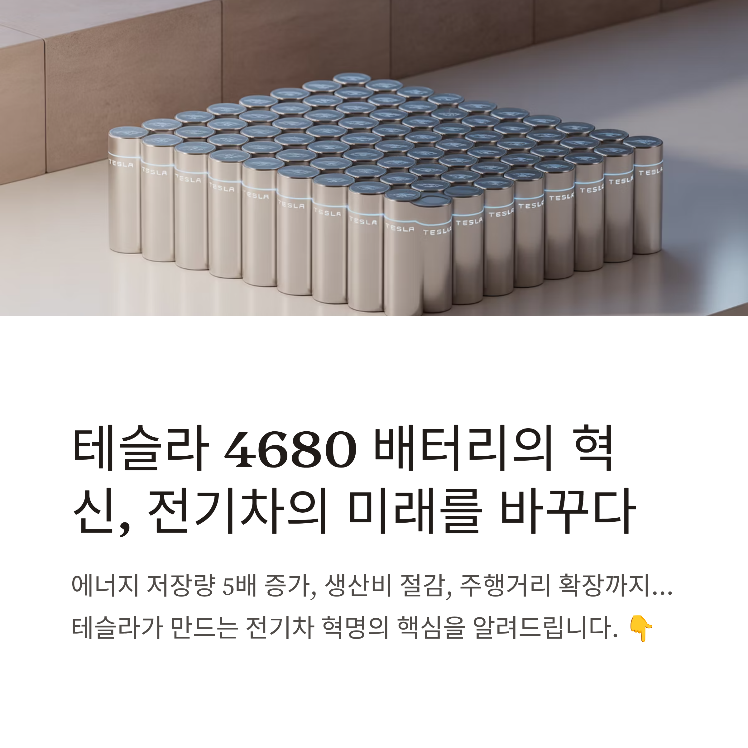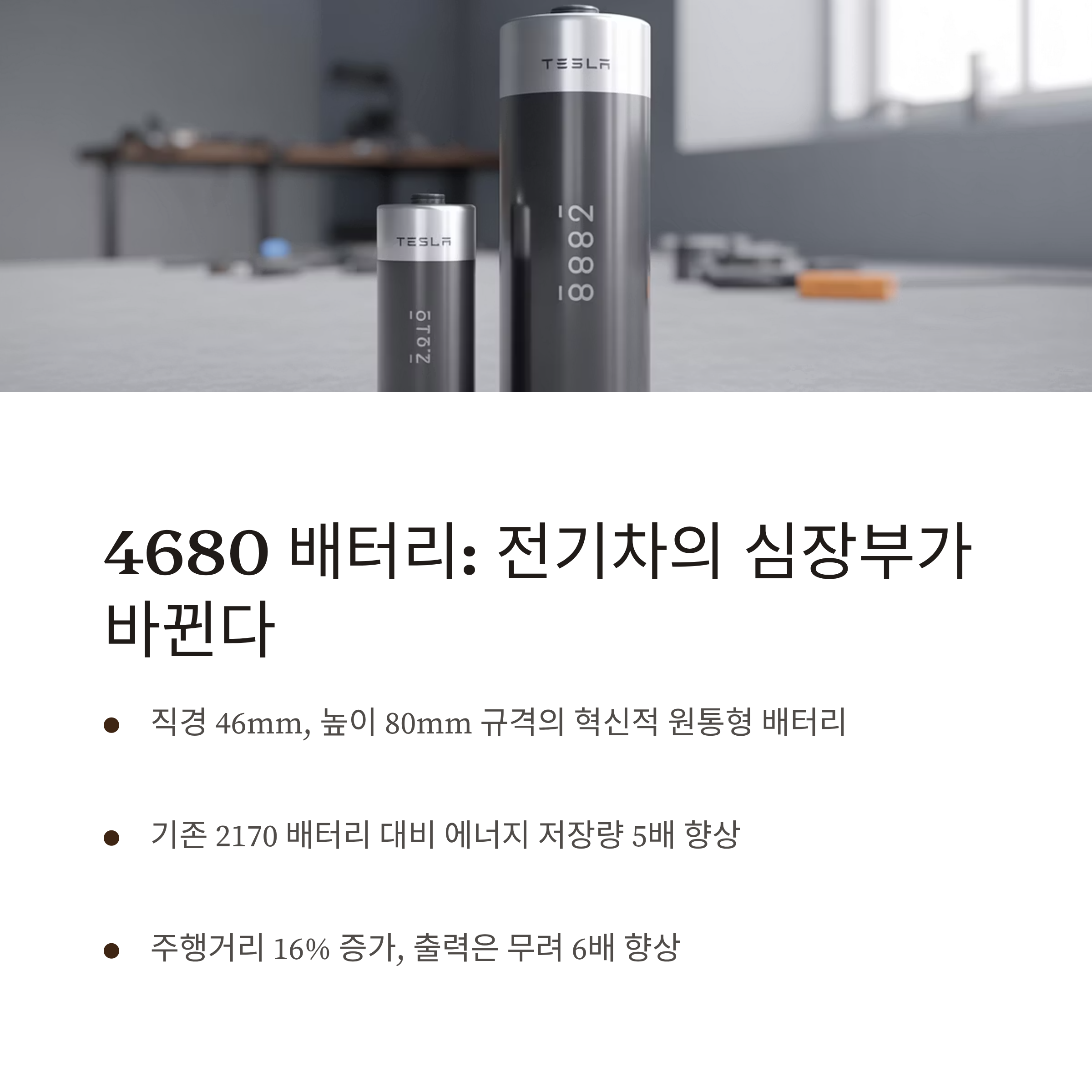 테슬라의 4680 배터리 혁신이 주는 새로운 가능성을 여러분과 함께 나누고 싶어요. 사실, 이러한 기술 발전은 단순히 전기차의 주행 거리