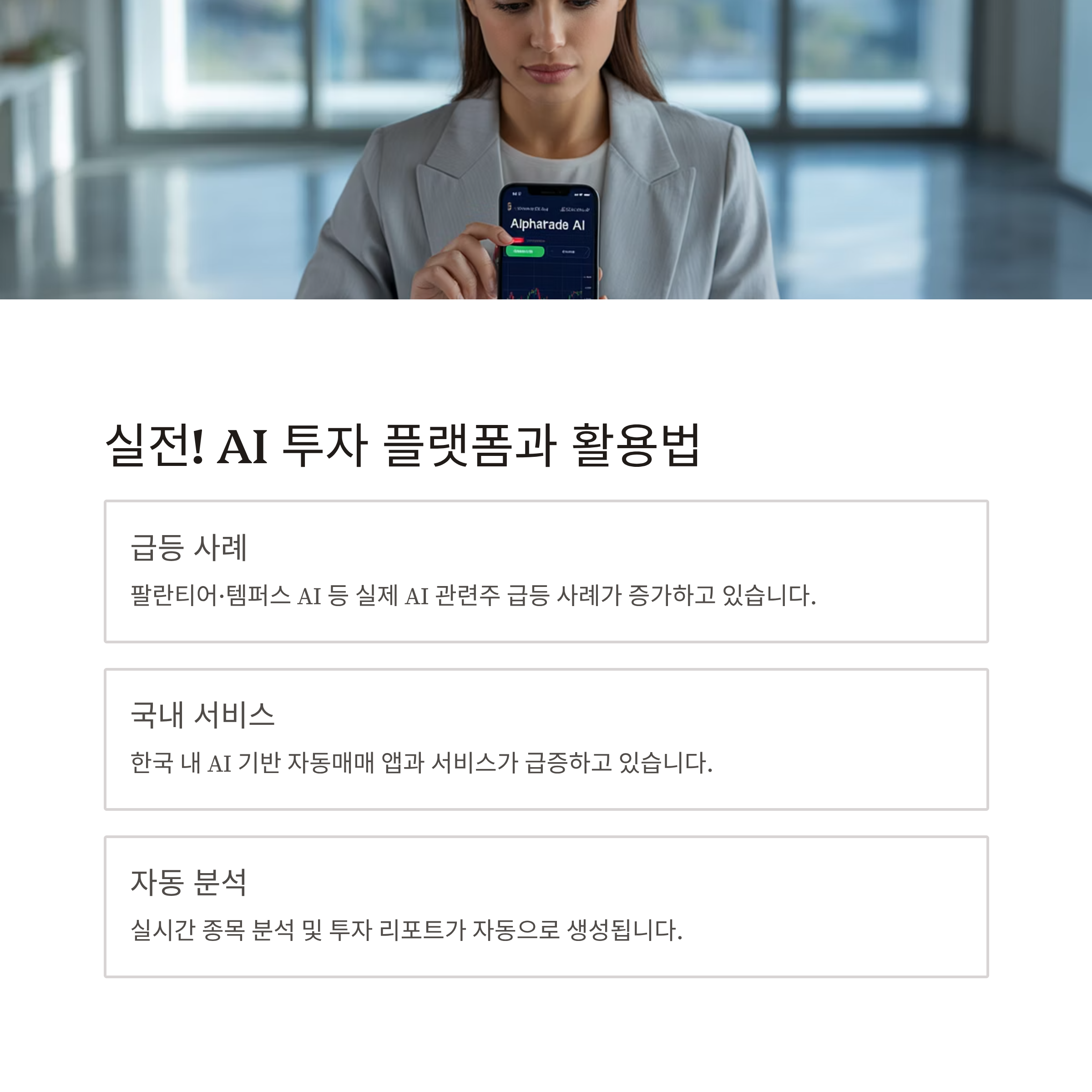'투자에 있어 AI를 활용하는 것은 이제 필수적인 선택이 되어가고 있습니다.'