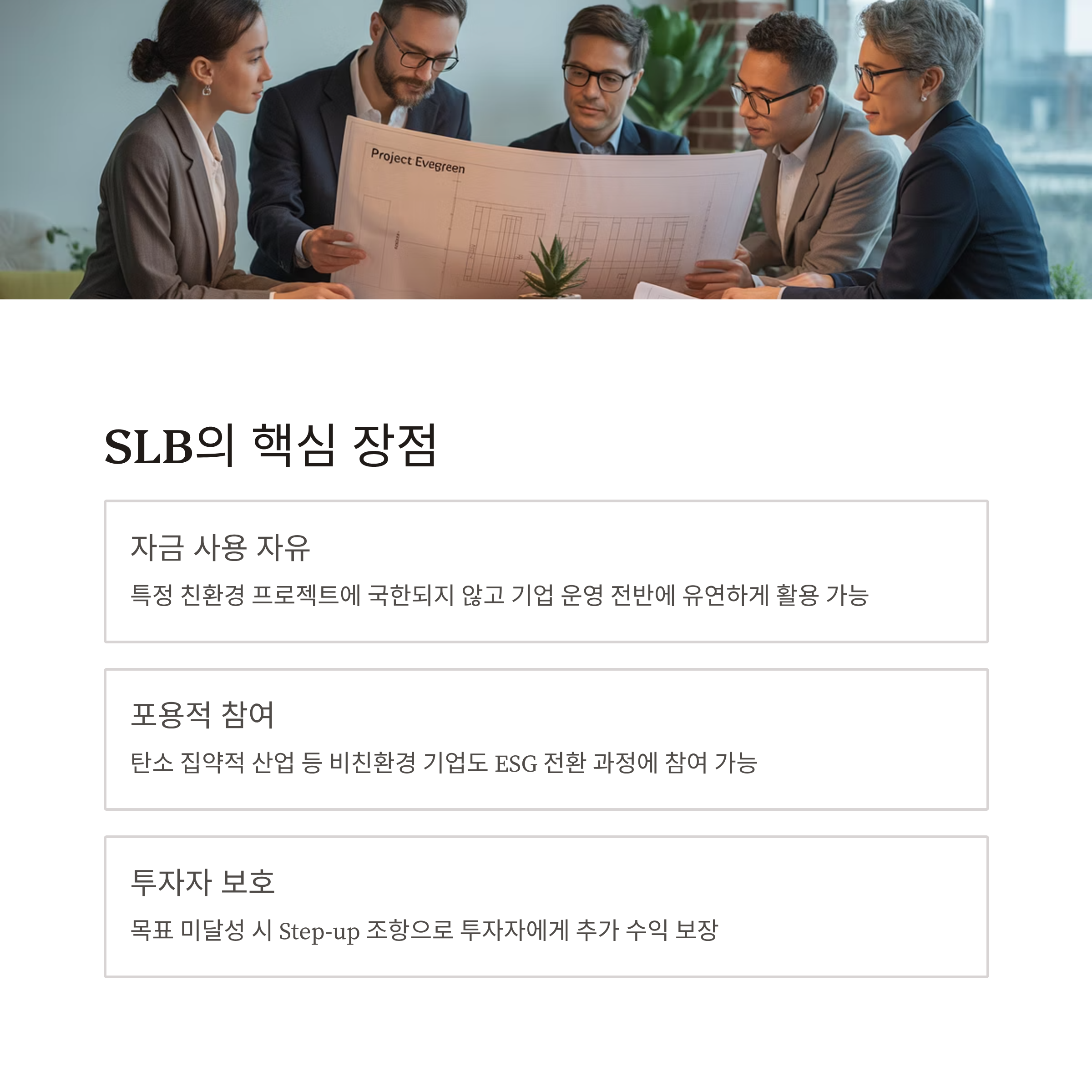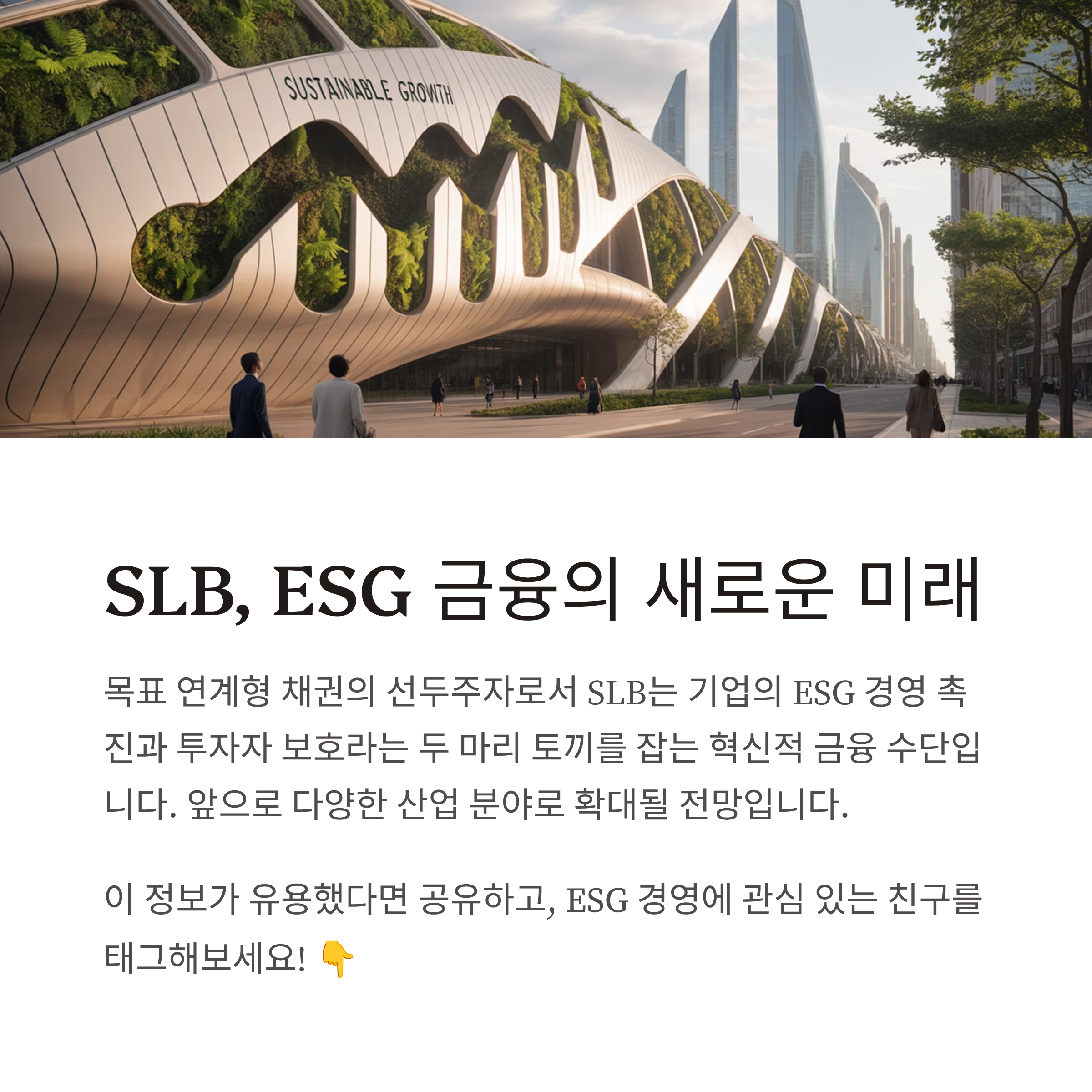 SLB, 즉 지속가능연계채권은 우리에게 새로운 투자 기회를 제공하죠. 기존의 ESG 채권이 자금 사용처에 제한이 있던 것과 달리 SLB는 그런 제한 없이 ESG 목표를 달성 여부에 따라 금리와 같은 금융 조건이 조정되죠. 예를 들어, 기업이 설정한 환경 목표를 달성하지 못하면, 추가 이자를 지급해야 해요. 이 때문에 기업들은 자연스럽게 지속 가능성 목표 달성에 더 집중하게 됩니다. 그럼에도 SLB의 투자 리스크를 고려할 필요도 있답니다. 이러한 시스템은 보다 공정하고 투명한 기업 운영을 유도하죠.😉