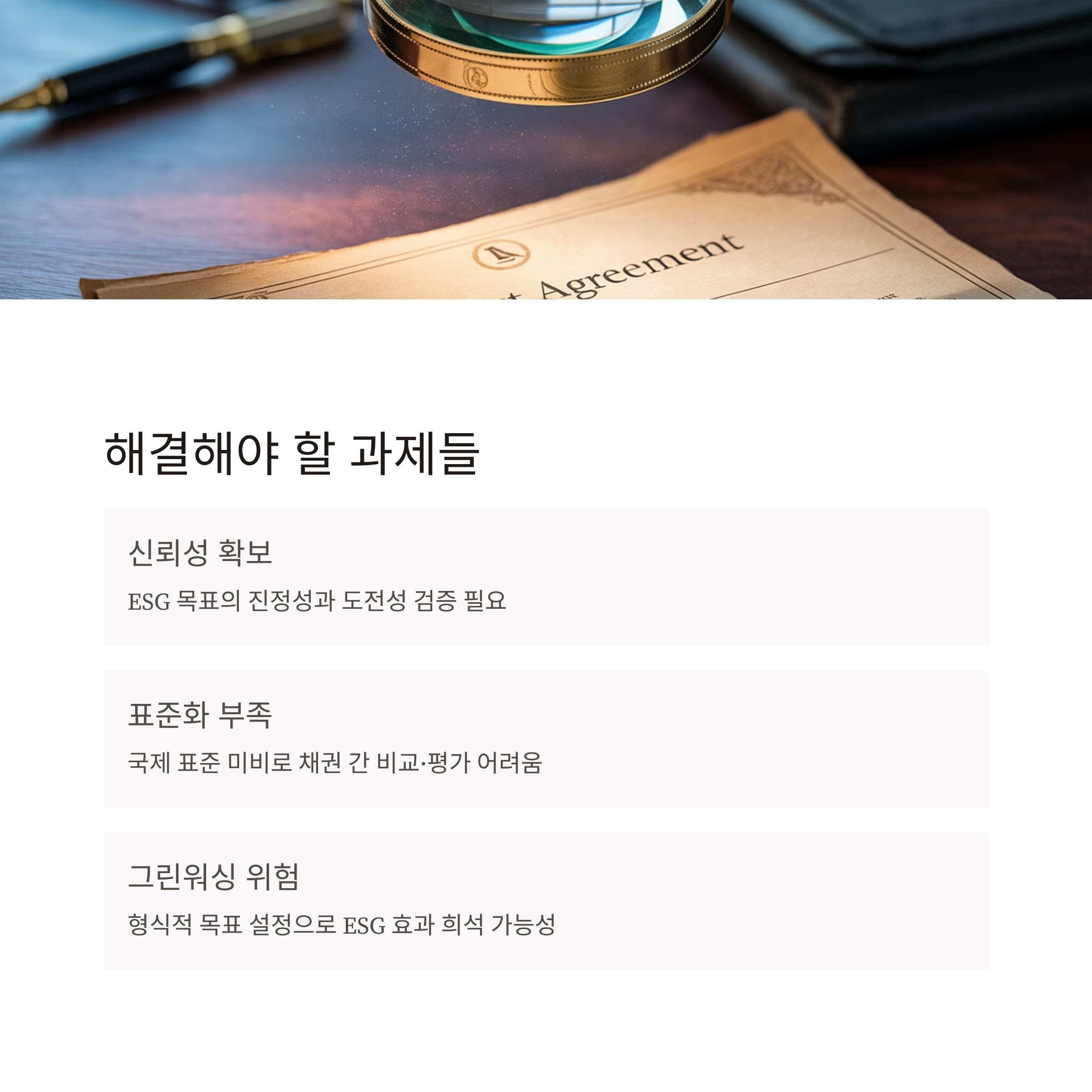SLB 채권이란, 기업이 사전에 정한 ESG 목표를 달성하지 못하면 금리가 불리하게 변동되는 구조적 특성이 있어요. 예를 들어, 온실가스를 줄이기로 했는데 계획대로 되지 않으면, 금리가 올라가 투자자에게 더 많은 프리미엄을 줘야 하죠! 이런 구조는 기업들이 지속 가능성에 실질적으로 투자하도록 동기 부여를 하죠. 하지만 이 과정에도 과제가 있어요. 정확한 목표 설정과 진행 사항에 대한 투명한 공개가 필수입니다.